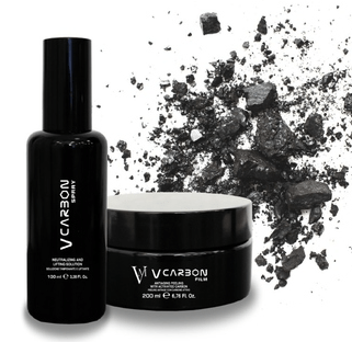 V Carbon je sestavený systém ze 2 produktů (V Carbon film a V Carbon spray), který umožňuje střední nebo výrazný peelingový efekt, dle typu a stavu pleti klienta.